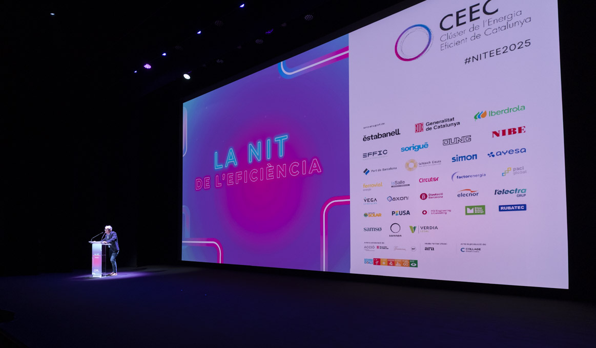 La 12a edició de la Nit de l’Eficiència es va consolidar, un any més, com un dels esdeveniments de referència del sector energètic a Catalunya. L’acte, celebrat novament al Teatre Nacional de Catalunya, va reunir més de 600 professionals d’empreses, centres de recerca i institucions compromeses amb la transició energètica i el procés de descarbonització del país. La Nit, que va estar conduïda pel divulgador científic Pere Estupinyà, també va acollir la 7a edició dels Premis EmErgEnt i va tenir el diari ARA com a media partner.
