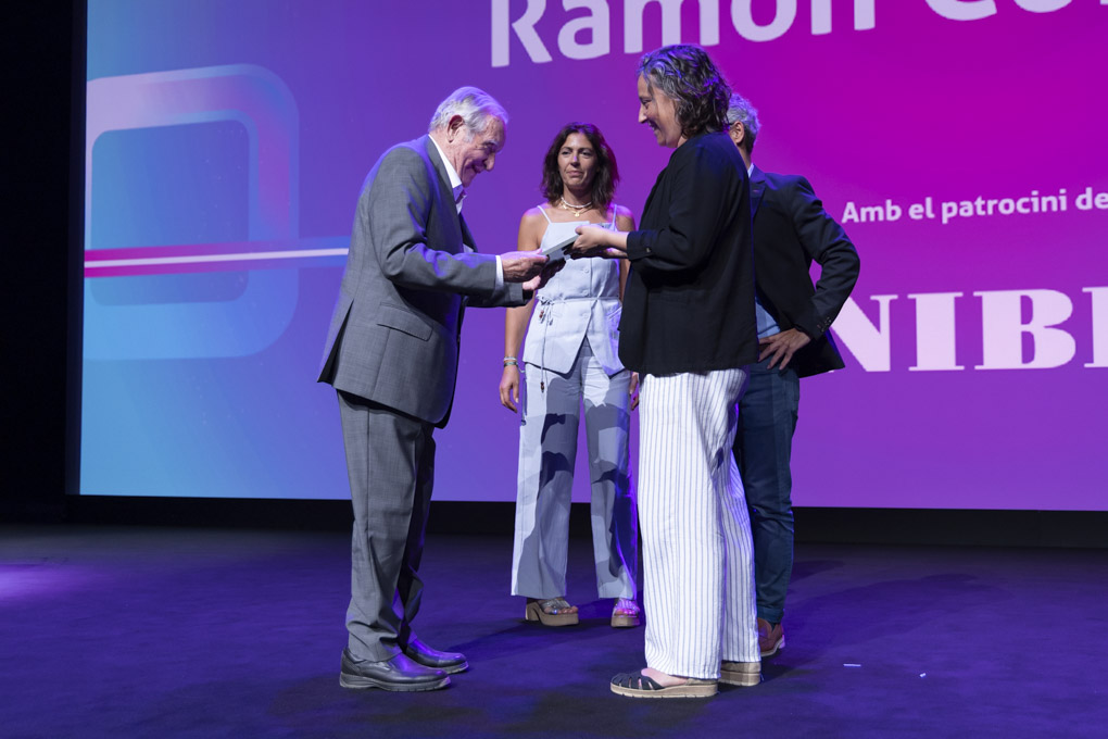Georgina Ferri va recollir el premi de mans de la Primera Tinenta d’Alcaldia de l’Ajuntament de Barcelona, Laia Bonet, i d’Hèctor Pascual, membre del Comitè Executiu del CEEC.